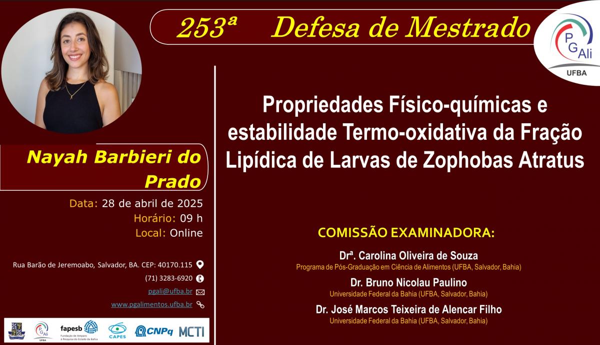 Palavras-chave: Insetos comestíveis, Zophobas morio, óleos e gorduras, compostos voláteis, estabilidade oxidativa.